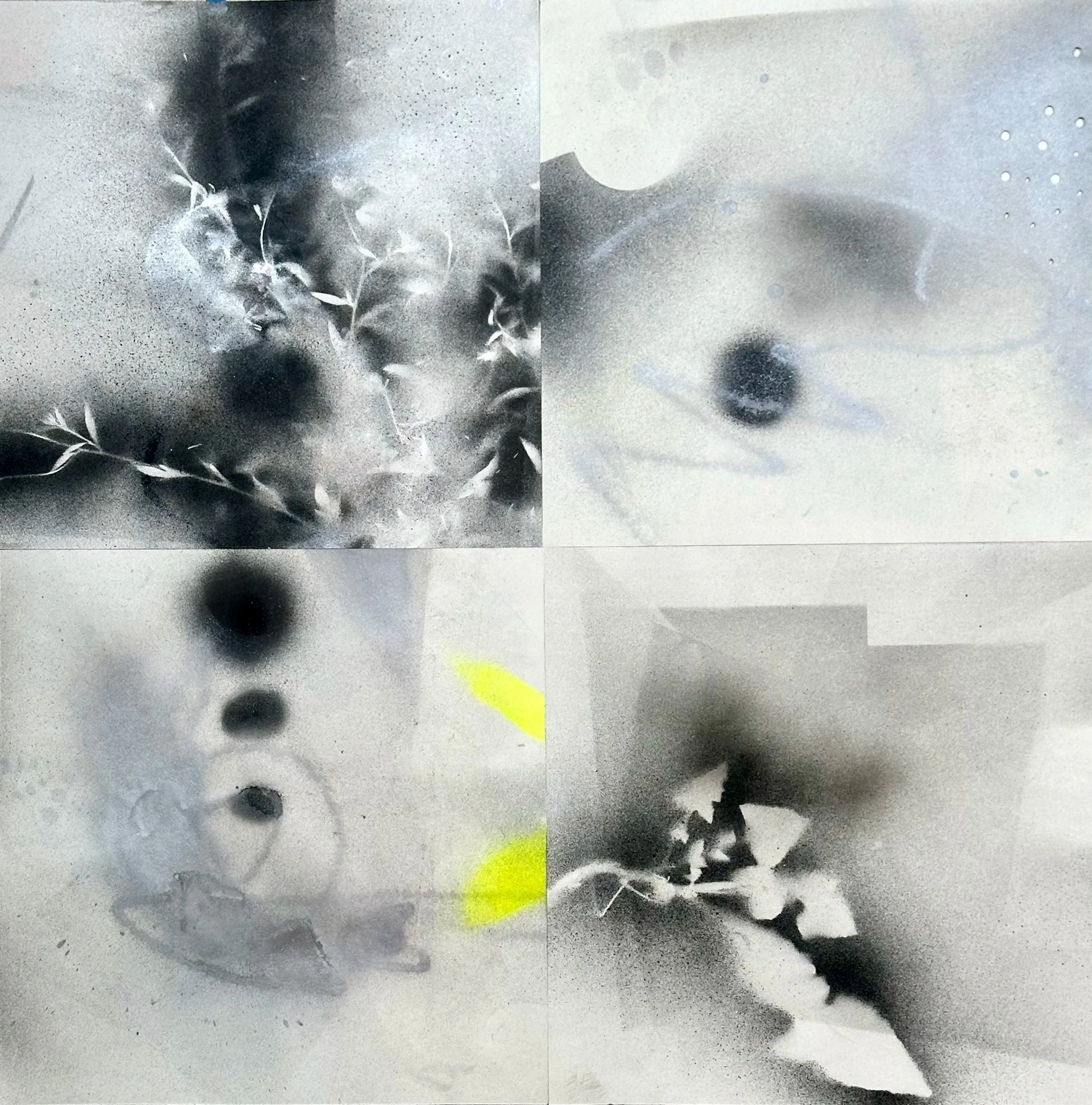 Shadows, acrylic spray paint on Sennelier paper, 25 x 25,” 2024, $2200