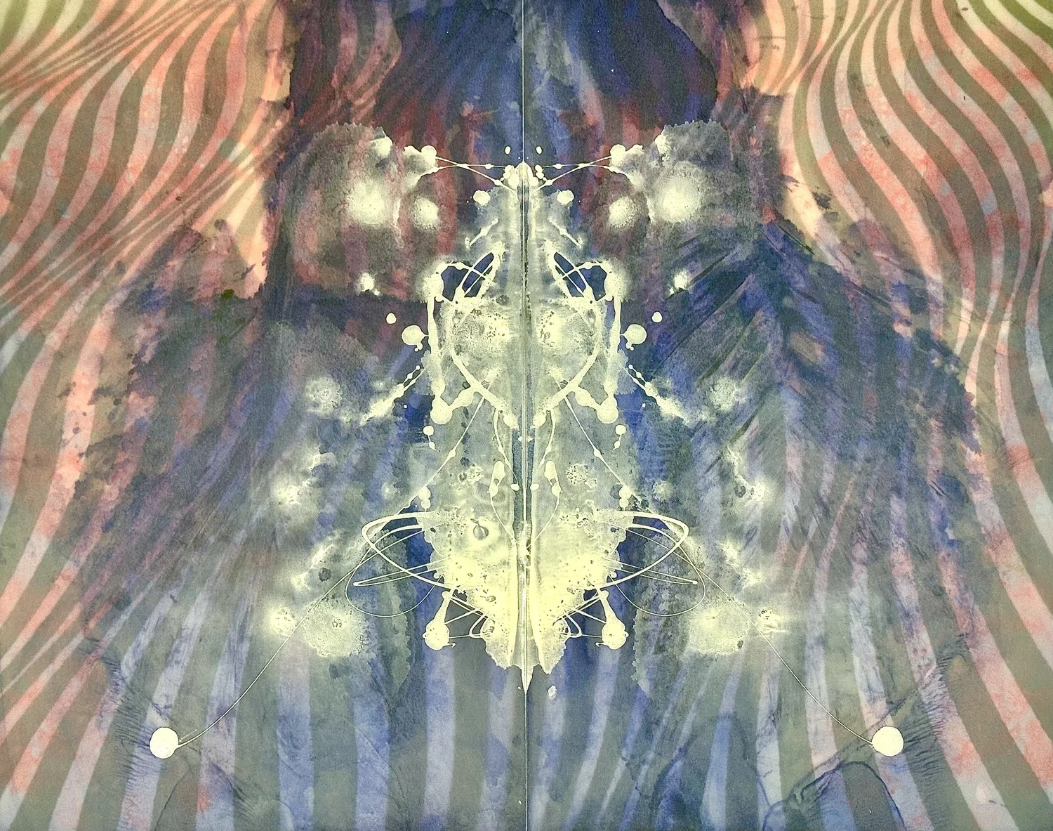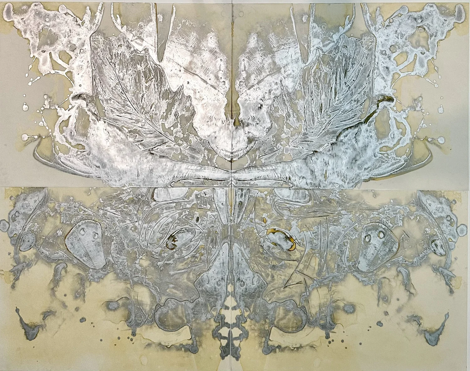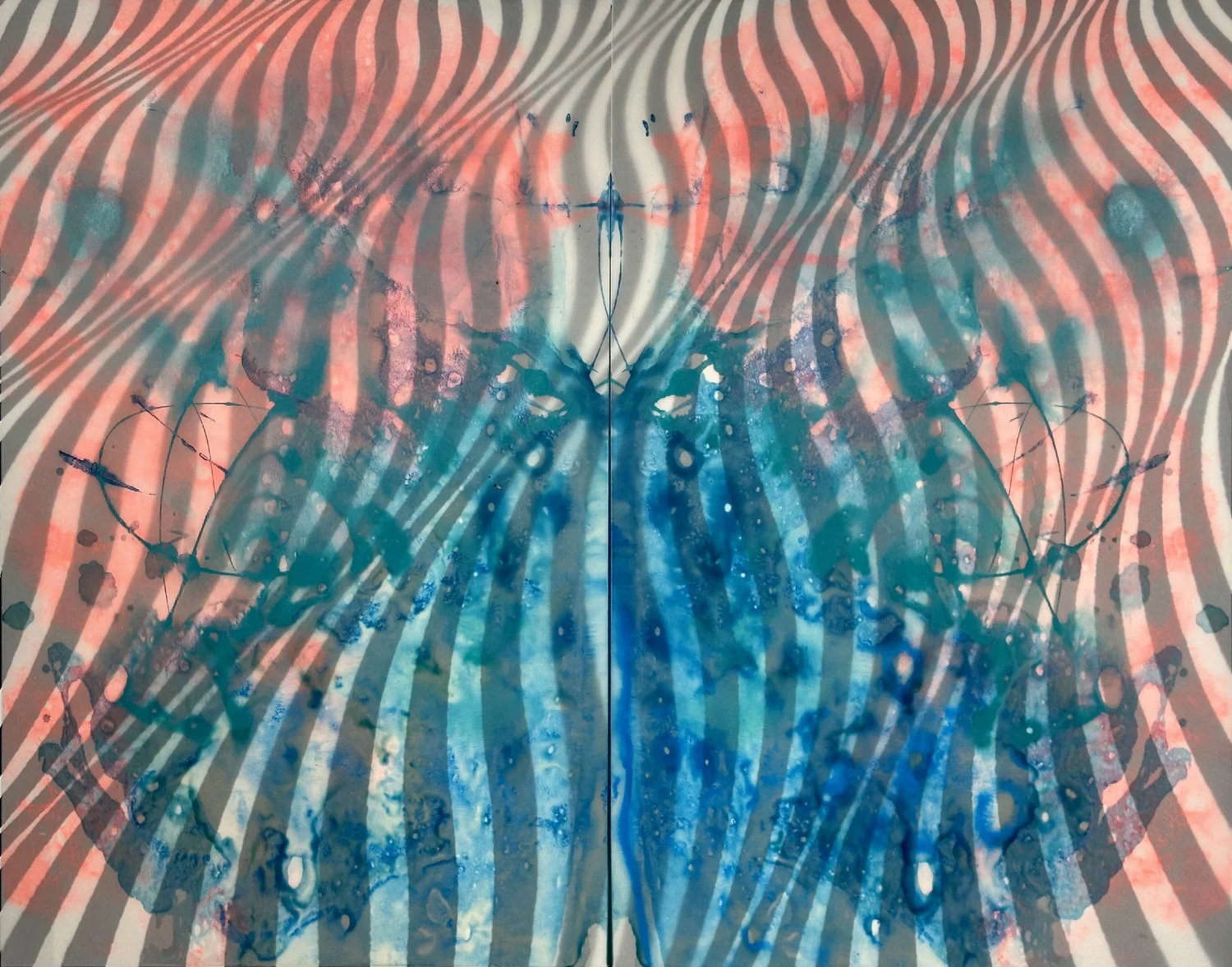 "Cleavage," enamel paint on translucent vellum, 24 x 38," 2023, $2500