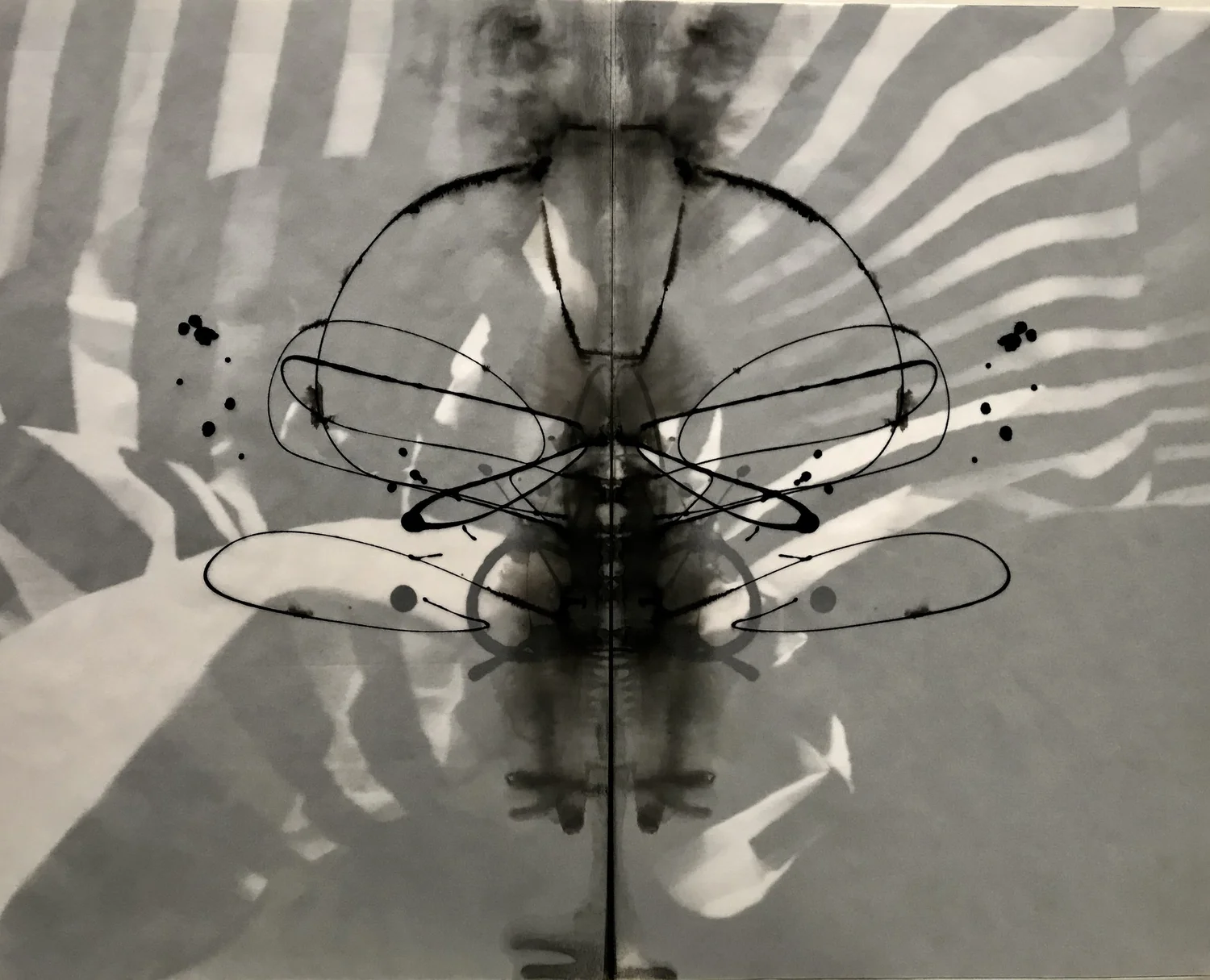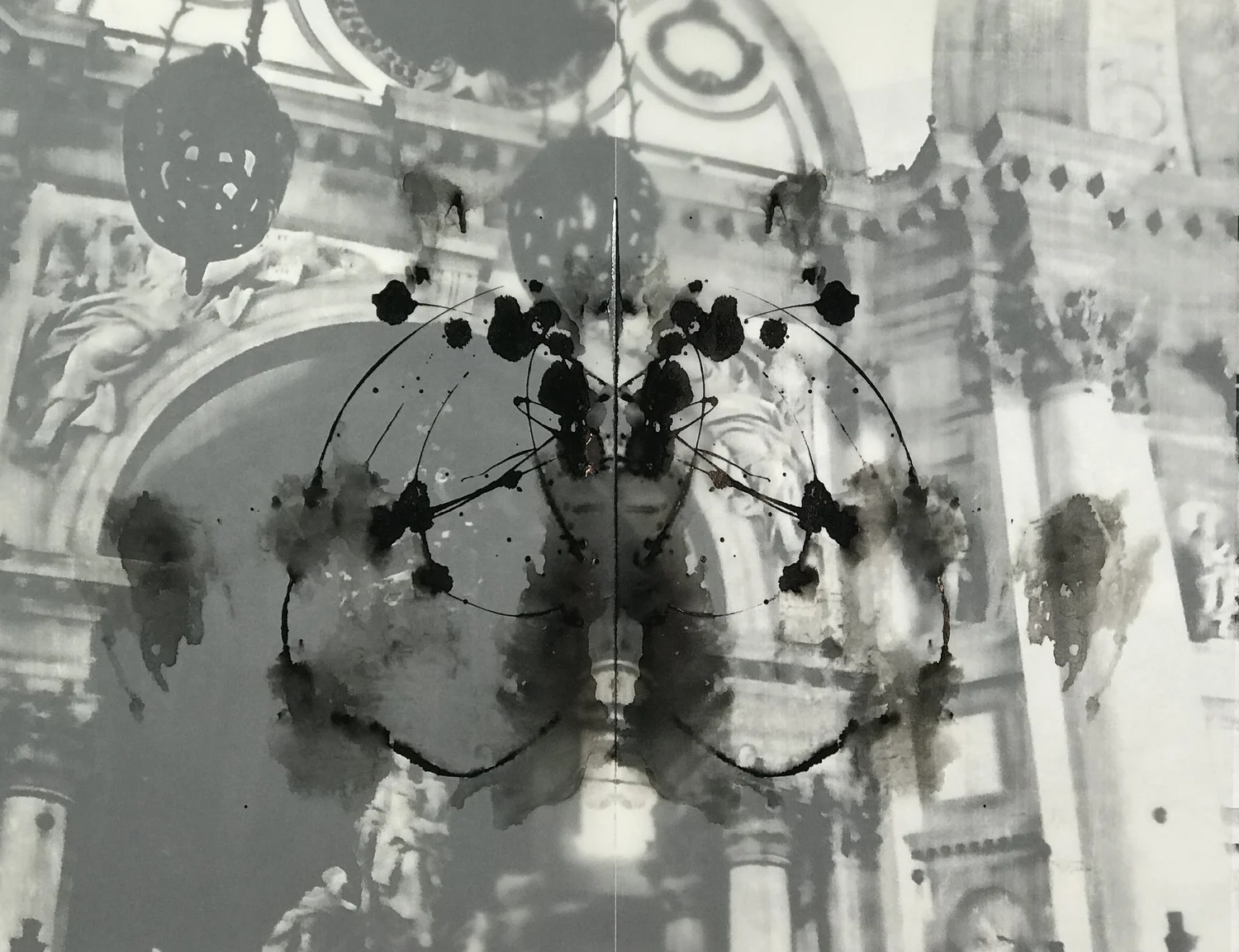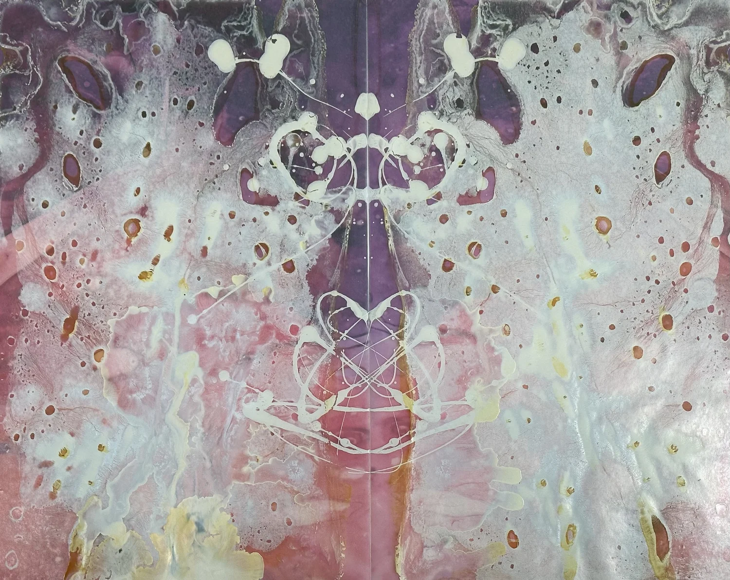"Cleavage," enamel paint on translucent vellum, 24 x 38," 2023, $2500
