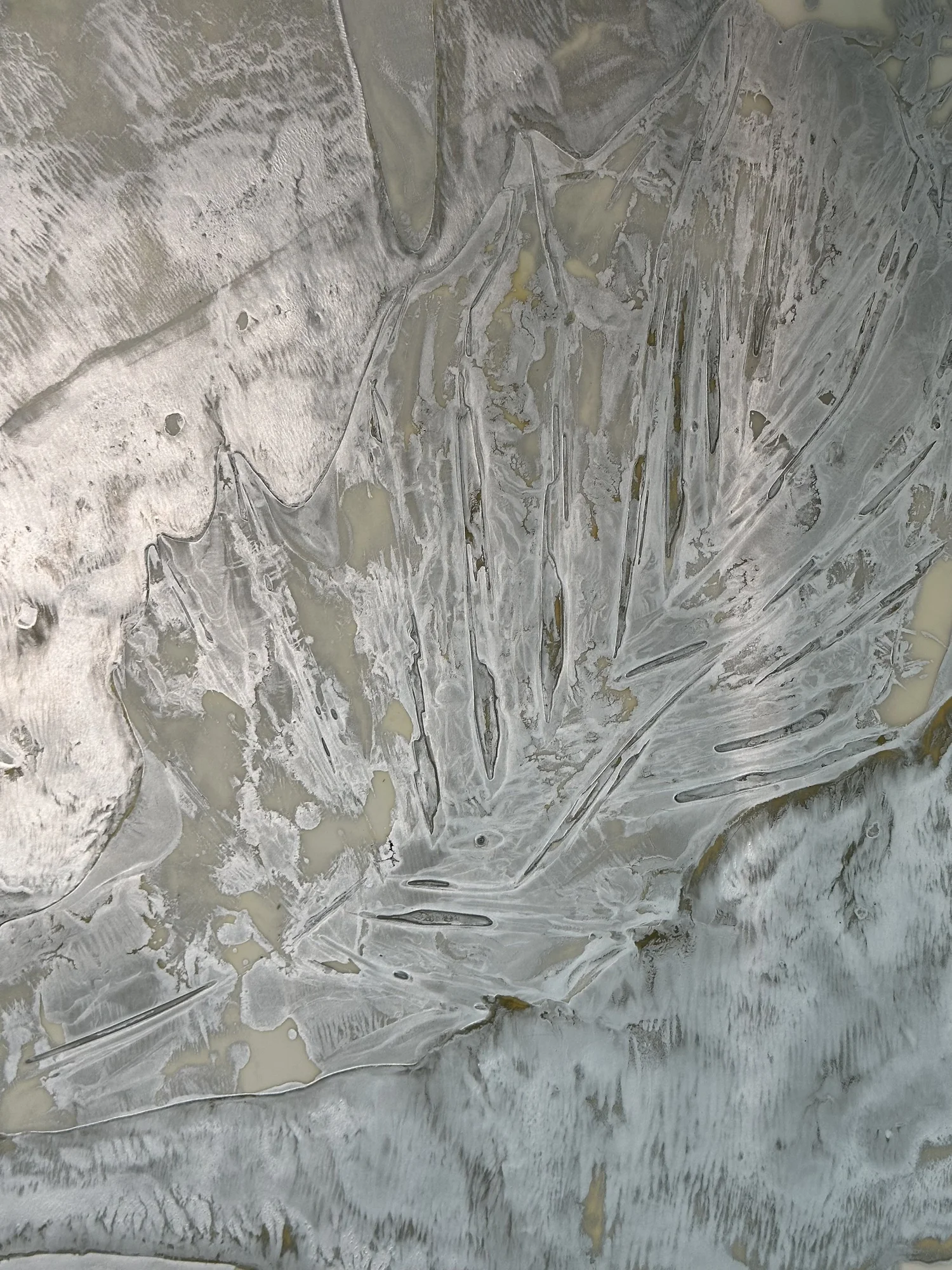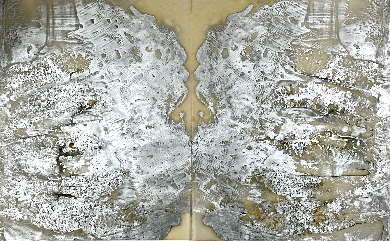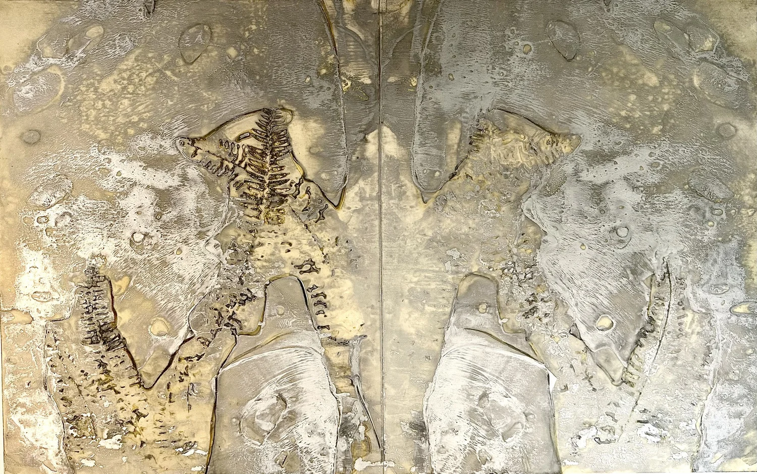 'Silver Bones," mixed media, 19 x 24," 2024, $1200