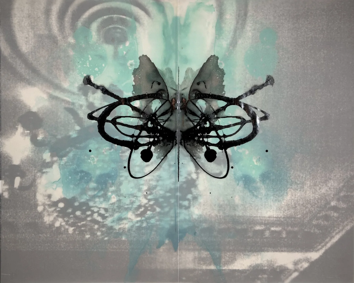 "Poseidon," enamel paint on translucent vellum, 38 x 48," 2023, $3500