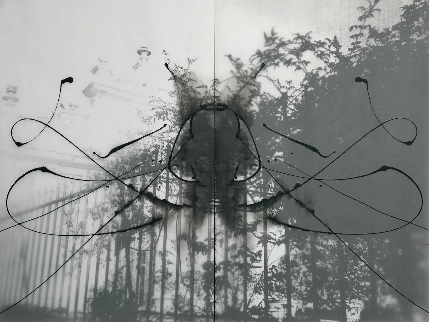 "Frozen Ferns," enamel paint on translucent vellum, 24 x 38," 2023, $